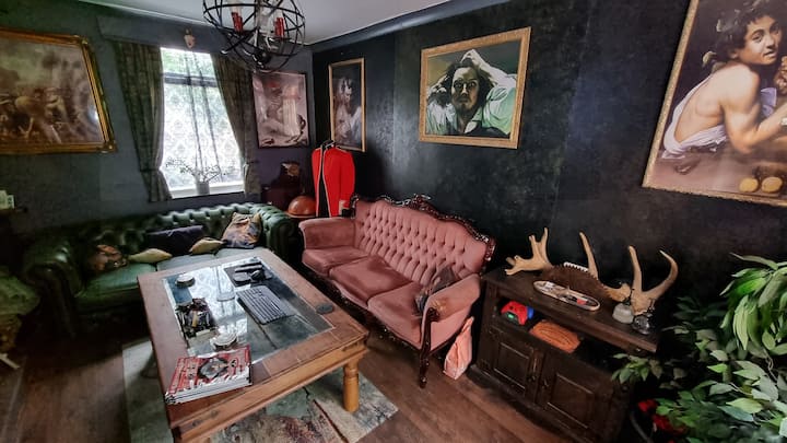 Habitación en una casa de arte peculiar con zona de fumadores al aire libre