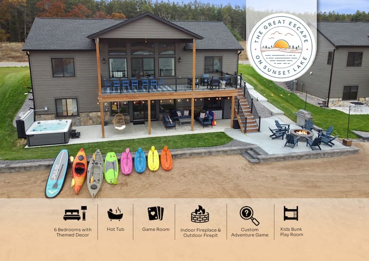Jacuzzi, fogata, sala de teatro, sala de juegos, cerca de Dells