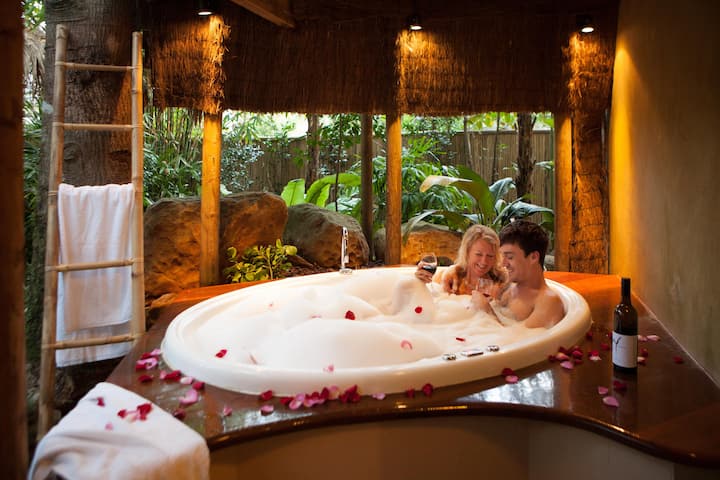 Minicasa de lujo, baño al aire libre, escapada definitiva