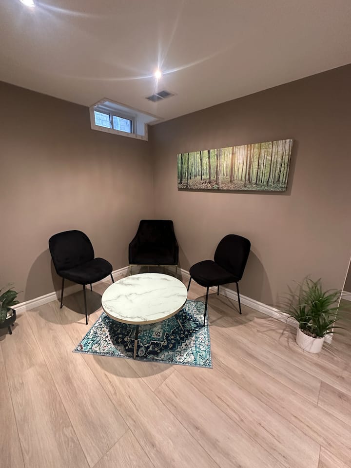 Habitación moderna iluminada por el sol en el sótano, Hamilton Mountain