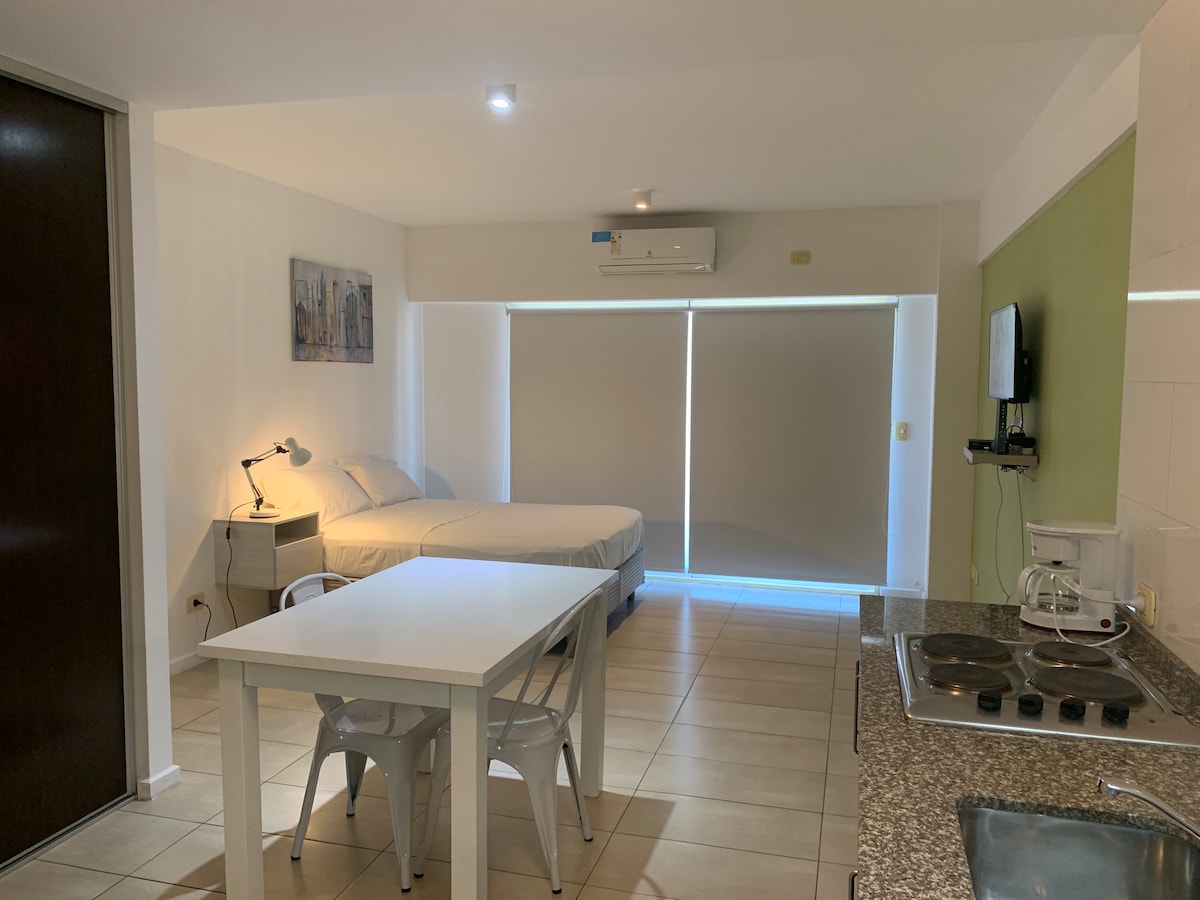 Increible y hermoso monoambiente luminoso con balcon totalmente equipado para 4 personas. Este encantador apartamento tiene todo para que disfrutes tu estadia de forma confortable !!! Posee un sommier de 2 plazas y un sillon/sofa cama para 2 personas. Amoblado con diseño, encanto y buen gusto. Aire acondicionado frio/calor, TV HD/cable, WI FI. Rapido acceso a los principales puntos de la ciudad, subterraneo linea D, Tren Mitre, Metrobus, centros comerciales y gastronomicos.