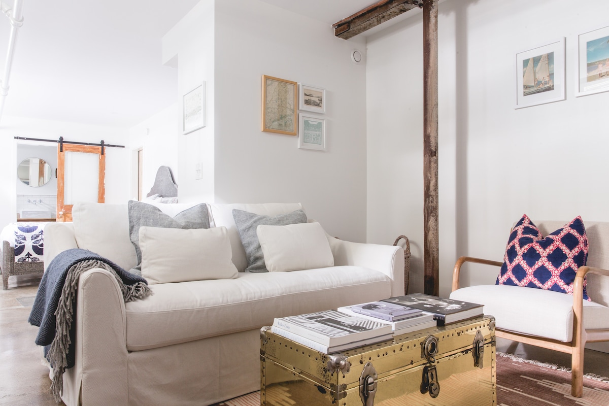 Suite privada, relajante y elegante en el tercer piso. A poca distancia a pie de una verdadera calle principal de Nueva Inglaterra donde puedes tomar un helado, una copa de vino o un masaje relajante. A 3,5 millas de una hermosa playa, a 2 millas del cine, a 1 milla del Eastern Trail. A 20 minutos de Portland en coche y Boston también está a poca distancia en tren. ¡Duerme en camas cómodas y luego despierta con café fresco en tu suite privada antes de salir a disfrutar de todo lo que el sur de Maine tiene que ofrecer!