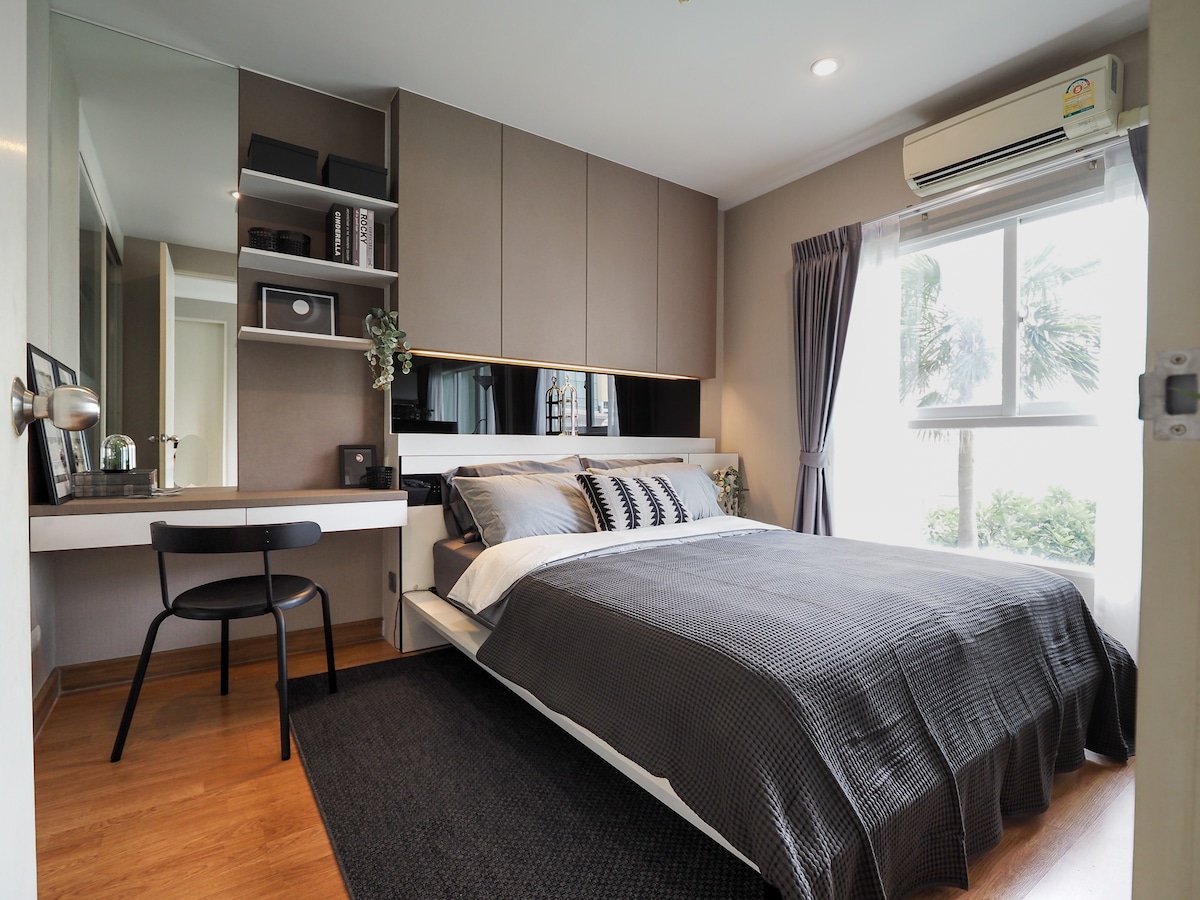¡Disfruta de una estancia relajante en tu moderno escondite en la ciudad! ✅ Llegada autónoma ✅ Colchón de alta gama ✅ Habitaciones individuales de aire acondicionado Camas tamaño✅ queen Wifi de✅ 500 mbps y escritorios de trabajo ✅ Sala de estar y comedor ✅ Cafetera ✅ Cocina completa + lavadora ✅ Plancha y tabla de planchar. Cerca (a pie): 🛒 7-Eleven – 5 minutos (¡en cada esquina!) 🚆 BTS Nana – 2 minutos 🌳 Benjasiri – 10 minutos 👜 Terminal21 Asoke (Solo los huéspedes que reserven una estancia de 30 días o más pueden acceder a la piscina en el piso 38)