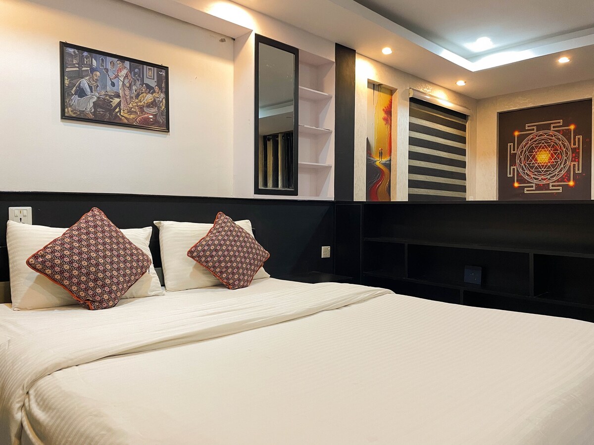 Enjoy a modern stay just steps away from the lively streets of Thamel, Kathmandu. This beautifully furnished king studio suite offers both comfort and convenience in one of the city’s most accessible areas. Guests also have access to a shared terrace, ideal for enjoying fresh air, a cup of coffee, or peaceful morning views before heading out to explore Kathmandu. Contemporary and calm atmosphere perfect for couple, solo or remote working.