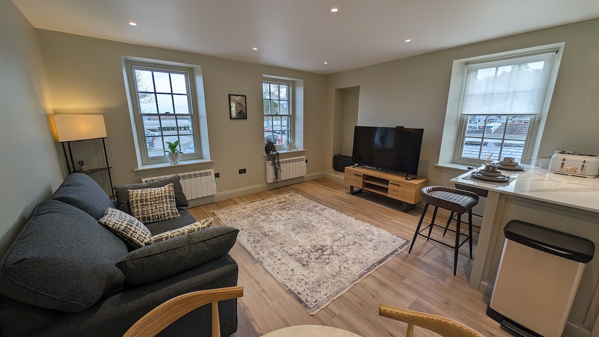 🌊 THE PARSONAGE - 2 dormitorios junto al mar en St Aubin ¡A pocos pasos de la playa y restaurantes! Disfruta de un luminoso apartamento en el último piso con vista al mar. 2 dormitorios, baño y cocina. A solo 1 minuto de la playa, restaurantes y el puerto, con una parada de autobús justo afuera para explorar la isla. Perfecto para parejas y familias. Tu base ideal para relajarte junto al mar, pasear por los encantadores carriles de St Aubin. Dos habitaciones dobles, cocina y baño con ducha. Nota: 1 escalera estrecha, sin salón.