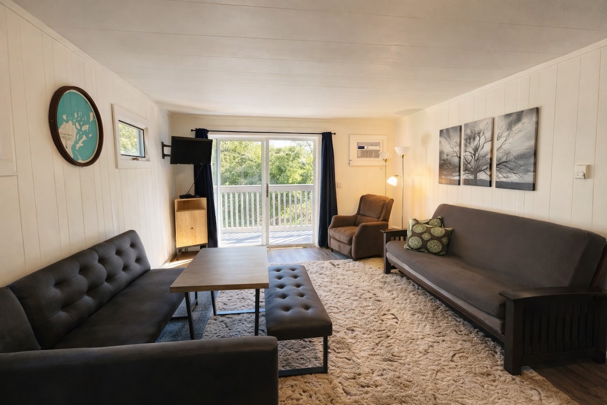 ¡Ubicación increíble! Wifi fuerte actualizado en 2026. Este condominio tiene capacidad para 4 personas, cama tamaño king y colchón inflable tamaño queen. Cocina completa, balcón, aire acondicionado, TV por cable, chimenea de leña. Restaurante, bar y piscina en julio-agosto. Bayfield está a 2,3 millas a pie o en bicicleta por el sendero Brownstone. Se proporcionan bicicletas. Brookside está a 5 minutos de Mt Ashwabay, Big Top, la playa de Bayview y múltiples rutas de senderismo. Viaja en ferry a Madeline o navega por los Apóstoles. Navega, pesca, kayak, golf, esquí. Tarifa por mascotas de 40 $ por estancia. 🙂 No se permite fumar.