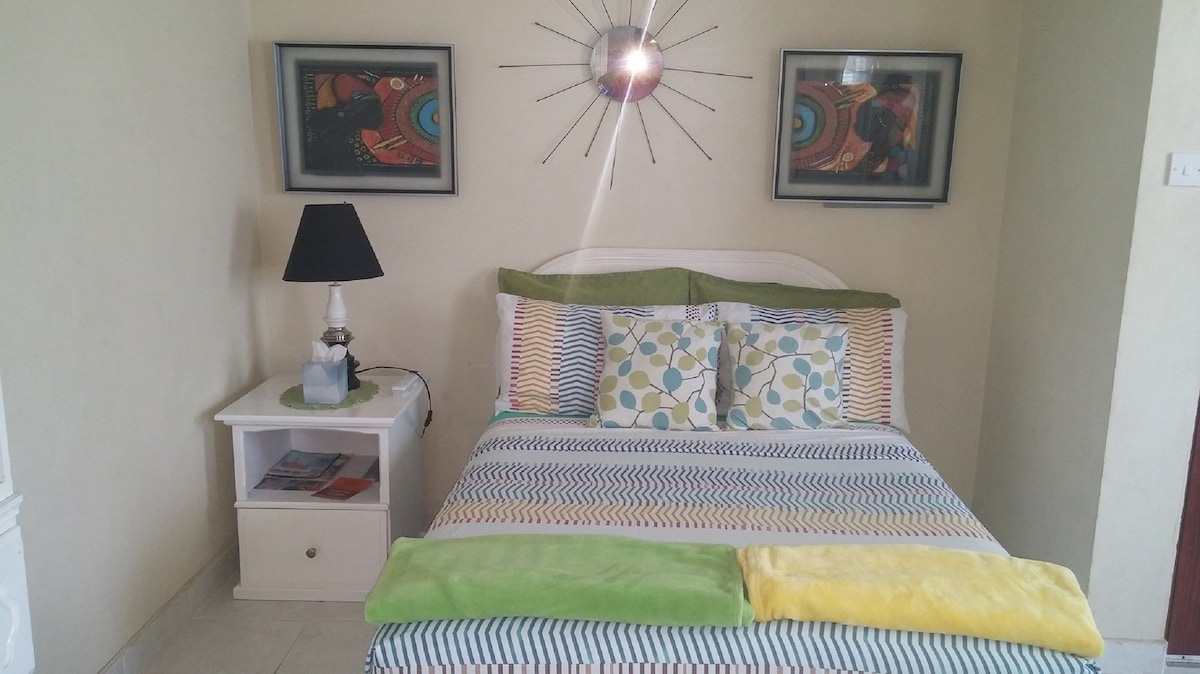 Fully furnished ground floor studio apartment ideal for anyone on vacation or doing business in Barbados. They are run by Kent and Diana Jerson and are close to the airport, the popular St. Lawrence Gap, the American Embassy and Sheraton Centre Mall.
