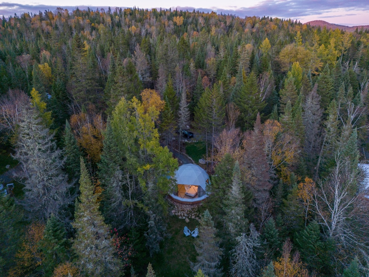 ¡Visita nuestro perfil de Airbnb para descubrir nuestras 6 cúpulas privadas! : ) ¡Te damos la bienvenida a Domaine l 'Évasion! Disfruta de una escapada romántica bajo un cielo estrellado. Relájate en tu spa privado de 4 estaciones, enclavado en el corazón de un bosque de coníferas, arrullado por el canto de los pájaros. A ★ 25 minutos de Tremblant ★ Spa privado para las 4 estaciones Chimenea de gas★ interior Lugar para hacer★ fogata Área de★ picnic con parrilla. ★ Ruta de senderismo ★ Ducha privada ★ Cocina completa. ★ Aire acondicionado