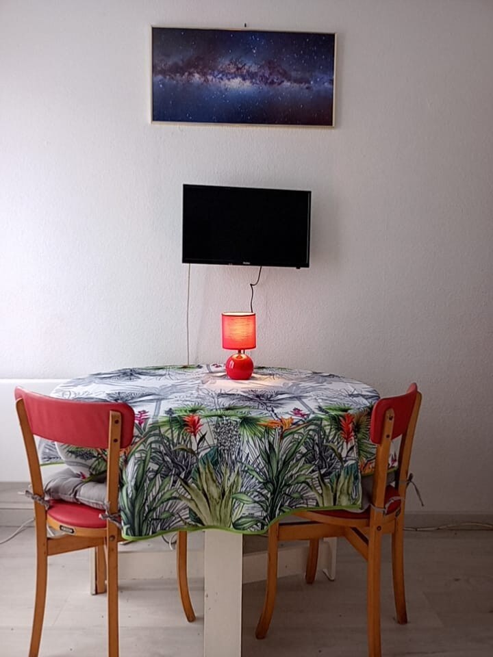 Bonito estudio reformado con wifi, luminoso con vistas al río y la montaña, equipado y funcional. Cama de 140. Restaurantes, bares y tiendas de comestibles cerca. Ideal para reponer energías y visitar los sitios del País Cátaro. Piscinas de aguas termales en la naturaleza junto al alojamiento. No se proporcionan sábanas ni toallas. Llegada a elegir: bienvenida física o caja de llaves (si se prefiere o se llega tarde) Posibilidad para 4 personas alquilando el estudio contiguo Les Charmes de Rennes les bains si está libre.