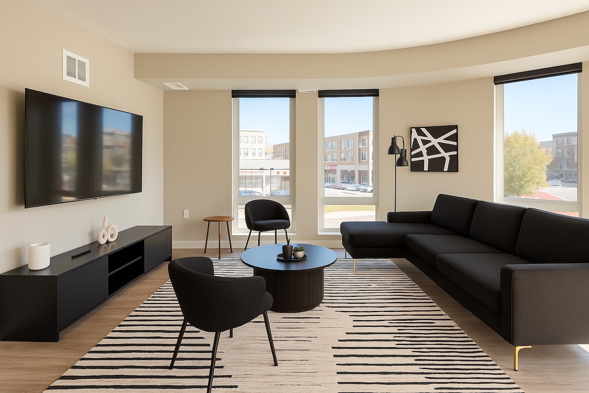 Descubre un espacio único recién reformado con toques de lujo en todas partes. Desde el momento en que entres, encontrarás toques relajantes que incluyen un televisor de 65 pulgadas, sábanas de lujo, un sofá de cuero de tamaño completo, un espejo de cuerpo completo iluminado y un baño que incluye jabón de lujo, champú, acondicionador, secador de pelo y todo lo que podrías soñar. Si buscas una buena escapada, una noche en la ciudad o simplemente un alojamiento de lujo limpio, ¡te ayudamos !