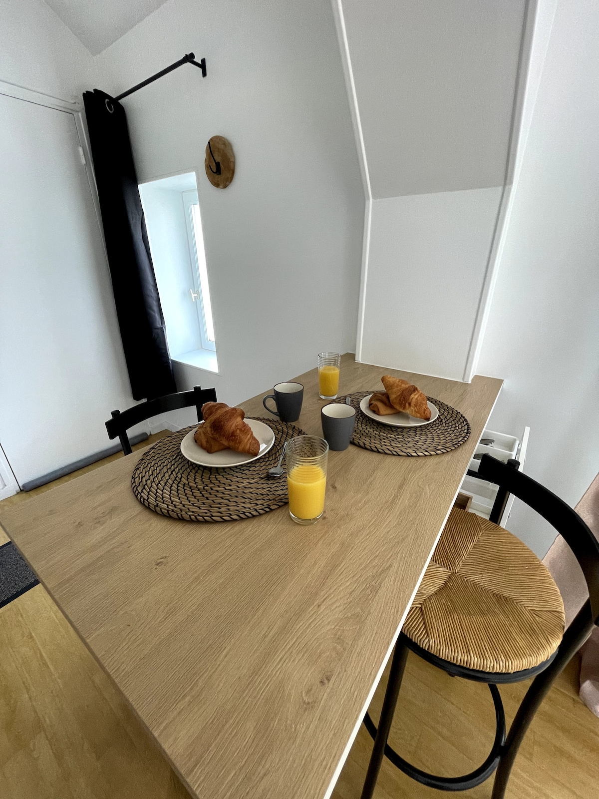 Pequeña casa de pueblo totalmente renovada que consta de una hermosa sala de estar con sofá cama, TV conectada, aire acondicionado, mesa de centro, isla central (barra con 4 taburetes) cocina equipada, nevera, microondas, etc. Cuarto de baño con ducha e inodoro, un dormitorio de arriba con aire acondicionado y armarios. Comercios cercanos ( a menos de 50 m): panadería, supermercado, carnicería, restaurante, bar tabaco...) Se proporcionan sábanas, no se proporcionan toallas de baño Acceso rápido a todos los destinos (A20)