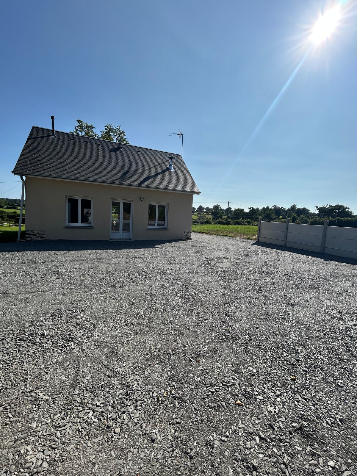 Bonita casa para 6 viajeros. La casa consta de una sala de estar sala/ salón con estufa de pellets , cocina equipada, tres dormitorios, baño con ducha a ras de suelo. También podrá disfrutar de una terraza con una barbacoa orientada al sur, así como de un exterior privado. Ropa de cama incluida (sábana+toalla) Las camas están hechas a la llegada. Cuarto de la colada que consta de lavadora, secadora, tabla de planchar, plancha. Aparcamiento con capacidad para dos vehículos.
