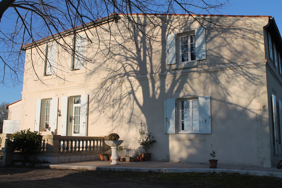 Situada entre Jonzac ville Thermale (15 km) y Montendre (7 km), esta casa le ofrece un alojamiento que consta de dos dormitorios y una sala de estar (sala de estar/cocina totalmente equipada). Una zona de comedor le espera a la sombra del tilo. Está idealmente situado entre Cognac, Saintes, Royan y Burdeos. Puede cambiar de aires en nuestros campos situados entre la tierra y el mar, y descubrir nuestro patrimonio a lo largo de nuestro río Charente.