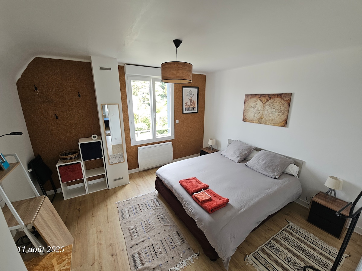 En Quimperlé, en la carretera de las playas, encantadora casa de estructura de madera de 90 m² con 3 dormitorios, situada en una zona tranquila en un callejón apartado del tráfico. Este alojamiento de una sola planta, con todas las comodidades, idealmente situado, le permitirá disfrutar plenamente de sus vacaciones. Cerca del centro de la ciudad a menos de 2 km se puede disfrutar de las actividades de ocio (cine, piscina, mediateca...), los ríos (piragüismo...) y las ventajas de la orilla del mar (playa, natación, deportes acuáticos, senderismo) a 12 km.