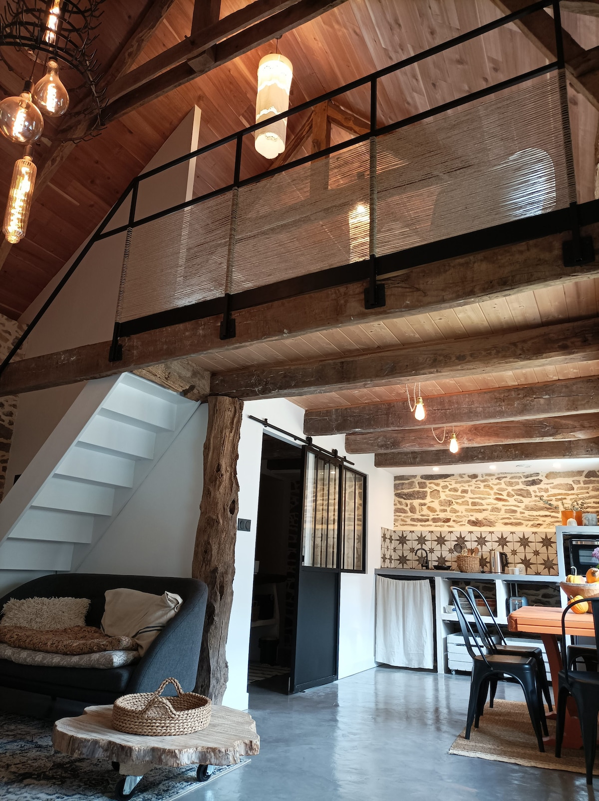 Mi alojamiento está en el corazón de la campiña bretona. La casa incluye una zona de cocina con cocina, horno, nevera, cafetera y hervidor de agua, un baño con lavabo y ducha, inodoro separado, una sala de estar/comedor y 2 dormitorios arriba. Mi alojamiento es perfecto para parejas, personas que viajan solas y familias (con hijos) - 29 € por noche para la 1.ª persona + 12 € por persona adicional [precio que puede variar según la temporada y la demanda]