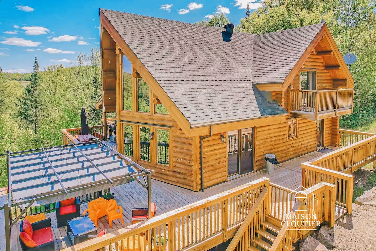 ¡El chalet de l'Orée du Bois Joli se encuentra en Val-David y tiene una vista que domina la copa de los árboles! ¡Instálate en el spa para observar las estrellas! Camine con raquetas de nieve por la propiedad de un acre que bordea las laderas del Monte Alta. ¡Relájese en nuestra hamaca gigante interior y disfrute de la magia de este refugio de madera! Senderismo, pistas de esquí, tres hermosas playas y muchas actividades y atracciones de los alrededores te esperan.