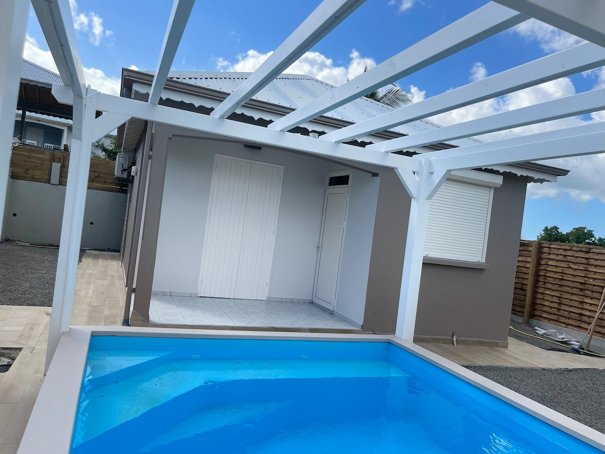 Un bonito bungalow independiente con todas las comodidades, ¡un pequeño pedazo de paraíso! Una terraza amplia y privada con su SPA semirrígido en un entorno tranquilo y verde. Equipado con un tanque para hacer frente a los cortes de agua. Situado a 7 minutos en coche del centro de la ciudad de Saint François y a 5 minutos de la playa de Raisins Clairs. ¡Para pasar unas vacaciones de ensueño!