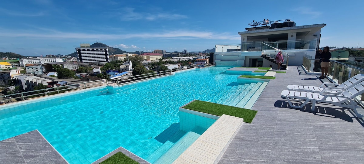 Estudio frente a la playa de✪✪✪✪✪ Patong con piscina en la azotea y bar