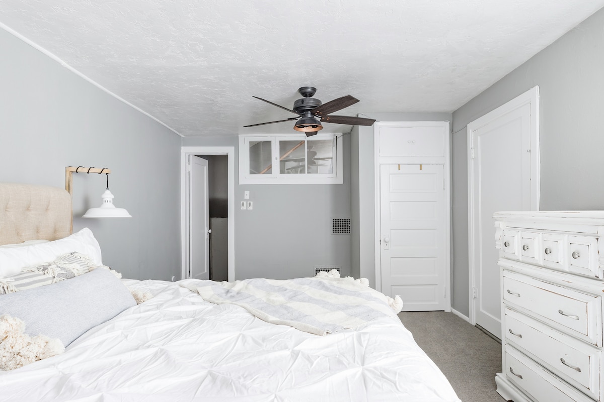 **Por favor, lee antes de reservar** Comparte cenas tranquilas bajo el ornamentado cenador de metal en una residencia llena de luz y carácter. Los relajantes tonos grises de esta casa de huéspedes privada de dos niveles (sala de estar, baño y cocina arriba, dormitorio abajo) de 800 pies cuadrados conducen a la tranquilidad y el descanso entre las fragantes rosas trepadoras del jardín privado. Ten en cuenta que hay dos juegos de escaleras en este apartamento. **Debido a la COVID-19, hemos mejorado nuestros procedimientos de limpieza para garantizar la seguridad de nuestros huéspedes. Si tienes alguna otra pregunta, no dudes en hacérmela llegar.** Esta casa de huéspedes es una hermosa casa de huéspedes de dos niveles en el barrio de Liberty Wells. En la planta superior hay una sala de estar, cocina completa y baño recién reformado. En la planta baja se encuentra el dormitorio con cama tamaño king. También hay un colchón de aire tamaño queen y un pack-N-play para acomodar a cualquier número de huéspedes. Tendrás acceso a toda la casa. Podemos estar a tu disposición si nos necesitas. Aunque es posible que no nos veas, ¡probablemente conocerás a nuestro Scottish Terrier, Tater, en el patio! Liberty Wells está justo al sur del centro de Salt Lake City. A una milla a pie o en coche se llega a Liberty Park y al distrito 9, que está salpicado de restaurantes y tiendas únicas, mientras que Alchemy Coffee y las tiendas vintage están a unas manzanas de distancia. Caminar es muy fácil. Sin embargo, un coche puede ser útil dependiendo de lo que planees hacer. Hay una parada de autobús a una manzana de distancia que te llevará por la ciudad. Y Lyft o Uber pueden llevarte a casi cualquier lugar por menos de 10 dólares. Un par de cosas que nos han contado los antiguos huéspedes: - Hay escaleras en el apartamento y, como fue construido en 1919, son estrechas. Hay una barandilla para las manos. - El dormitorio y el baño están en pisos separados. - Estamos situados al final de una calle sin salida, lo que hace que el estacionamiento sea difícil. Tenemos un vecino que es muy vocal sobre «su plaza de aparcamiento», delante de su casa; sin embargo, todo es aparcamiento público en la calle. - Debido a que el edificio fue construido en 1919, los huéspedes han disparado el disyuntor cuando se enchufaban demasiados electrodomésticos a la vez. Te recomendamos que utilices los electrodomésticos de uno en uno.