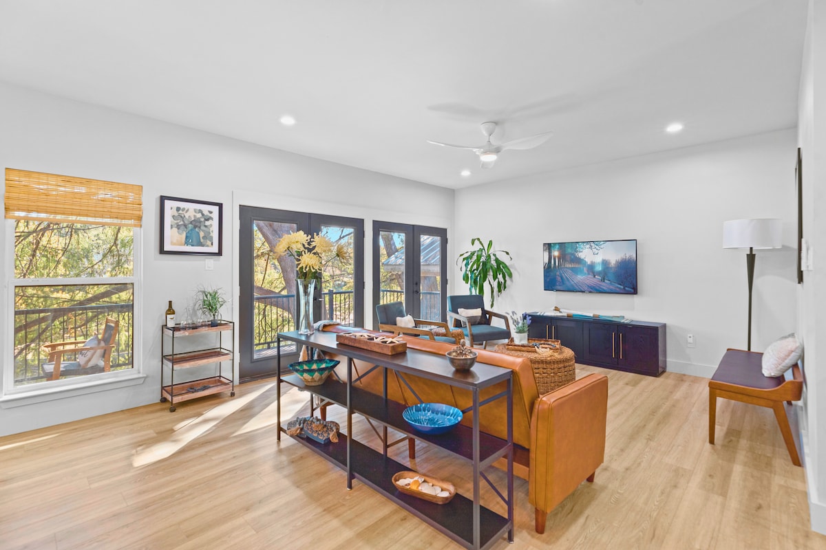 ¡Este alquiler vacacional de 2 dormitorios y 2 baños en San Antonio de reciente construcción es el alojamiento perfecto para un retiro relajante con familiares o amigos! Esta casa cuenta con carga GRATUITA de nivel 2 EV (CCS), tres televisores inteligentes y una cocina totalmente equipada. Tómate un café desde la terraza y disfruta de las vistas al lago y al jardín de plumeria. Pasa tu tiempo caminando por rutas locales antes de ir de compras/hacer turismo. Nota: esta propiedad está en el segundo piso y requiere escaleras para acceder.