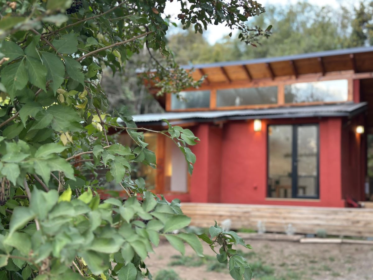 Modern house by a meltwater stream in a peaceful natural setting. Just 15 min from Cerro Catedral, 25min from downtown and walking distance to Lake Gutiérrez beaches. Perfect for relaxing or working remotely: 200 mb fiber optic WiFi, mezzanine with 2 desks, private deck with grill. One bedroom with queen bed, full kitchen, modern bathroom, central heating with radiators. Paved road access ensures year-round accessibility. Large parking area. Pet friendly. Comfort, nature, and great location.