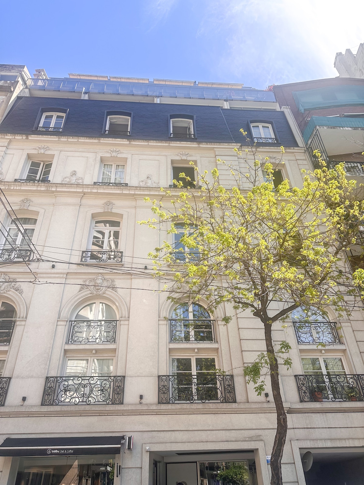 Es un departamento elegante, amplio (60 m2) y luminoso en un antiguo edificio de Recoleta, con una excelente ubicación para vivir una experiencia porteña con espacios verdes, rodeado de museos y restaurantes. Está muy bien decorado, lo que lo ha llevado a ser publicado en revistas de decoración relevantes. Tiene un pequeño balcón que mira a una plaza pequeña (Plaza del Lector II). La Biblioteca Nacional esta a media cuadra en diagonal.