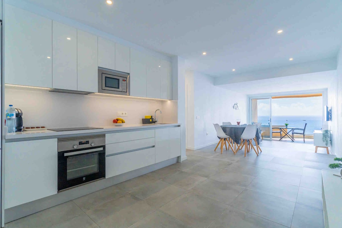 Primera linea de mar y playa debajo del apartamento. Disfrute de una vista de alta mar desde tierra firme, así como de la tranquilidad y comodidad que ofrece el apartamento; acceso directo a una piscina natural de agua salada, playa, solarium con acceso a mar abierto ideal para snorkel o buceo, apnea. Club de buceo, cafeterías, restaurantes y tiendas de alimentación. Cuenta con garaje privado. Se sentirá cómodo y relajado ya que el apartamento está muy completo y renovado. Les gustará :)