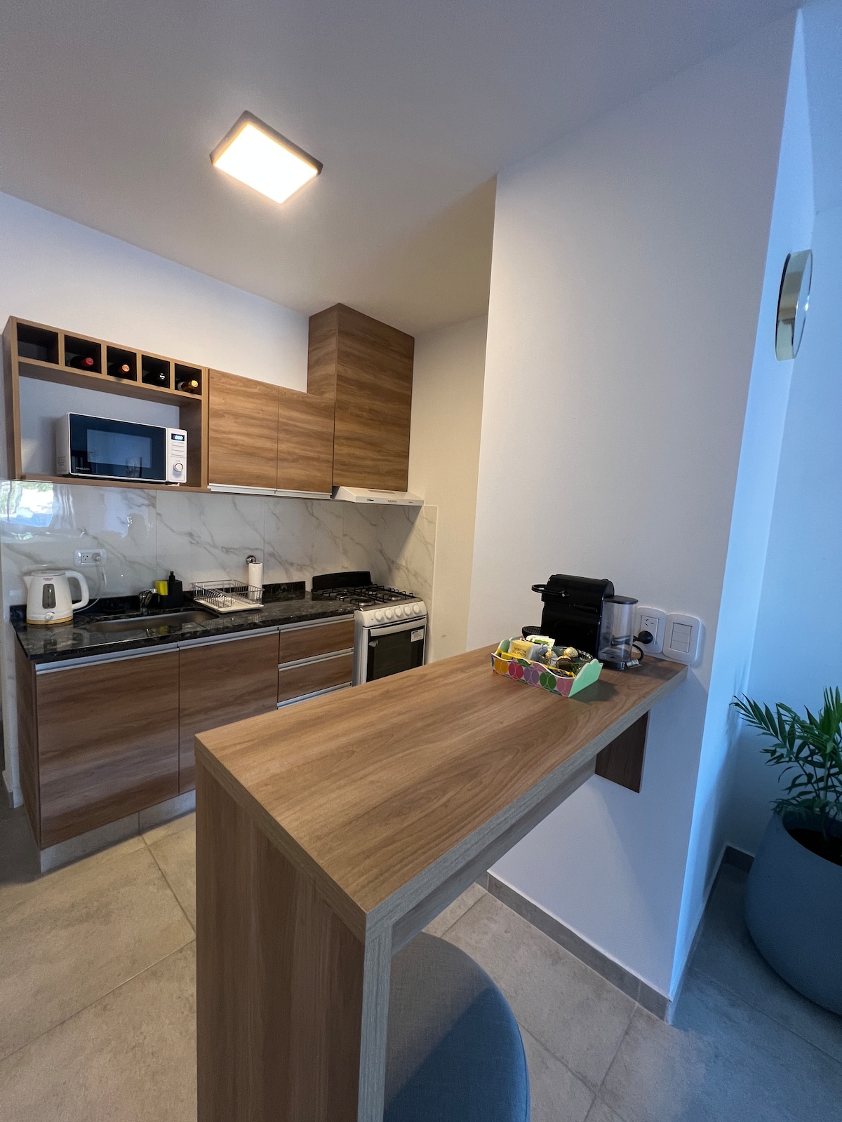 ⭐️Nuevo a estrenar⭐️ Departamento ideal para descansar, para desconectar, para tener una estadía tranquila y amena. Disfrutarás de un hermoso Living- Comedor, amplio y luminoso, con cocina semi integrada y Barra desayunador. La unidad posee 1 cama de dos plazas y un sofá cama de una plaza y media. Baño y ante baño Balcón Vení a conocerlo!