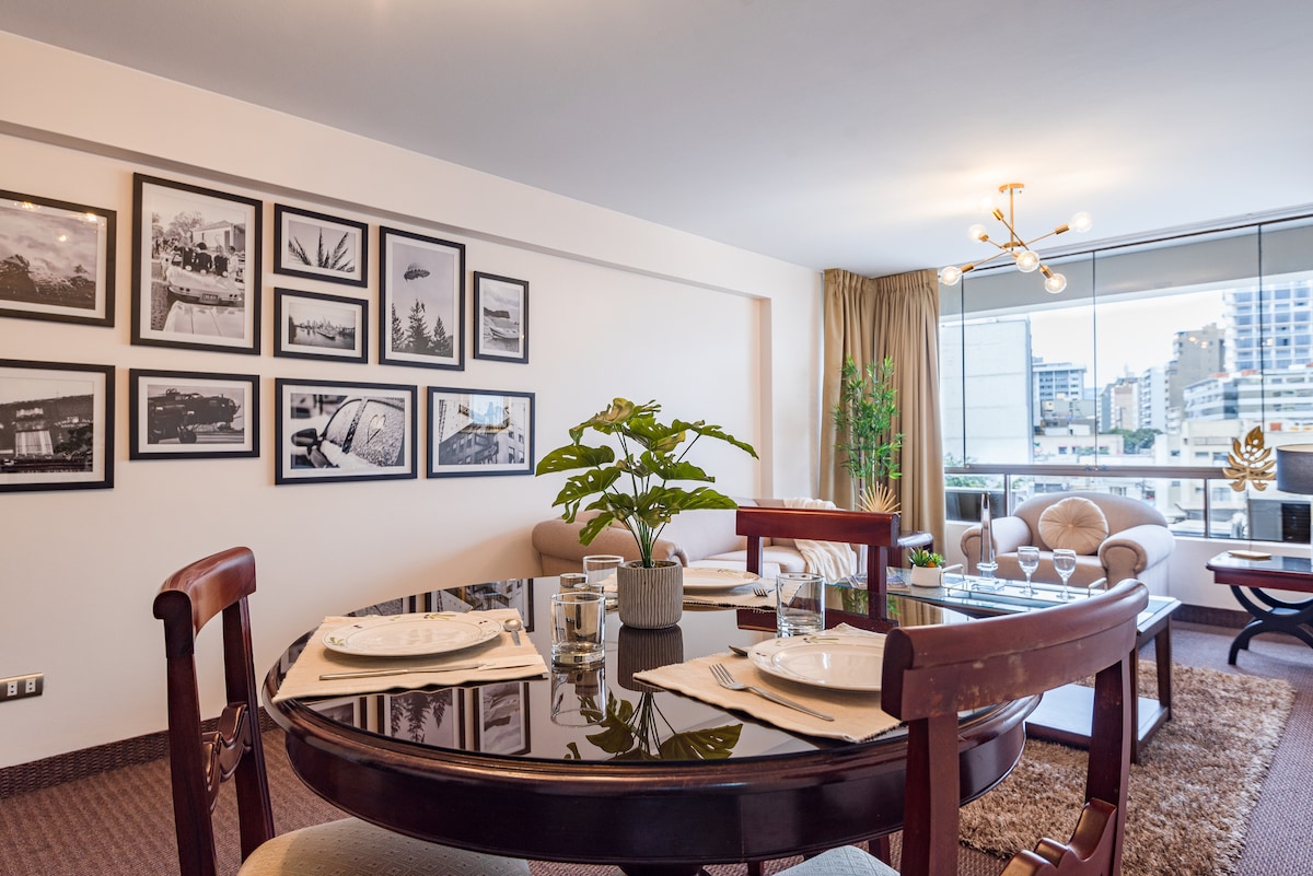 Ideal para estancias largas, ejecutivos o parejas. Ubicado en la mejor zona financiera de Lima, con todo a tu alcance. Muy cerca de bancos, restaurantes, cafés, tiendas por departamento, entretenimiento, paraderos de autobús, etc. Disfruta de un apartamento acogedor, muy iluminado, con todas las comodidades para trabajar y descansar a distancia. En un edificio moderno con recepción las 24 horas, gimnasio, piscina en una de las zonas más bonitas y seguras de Lima.