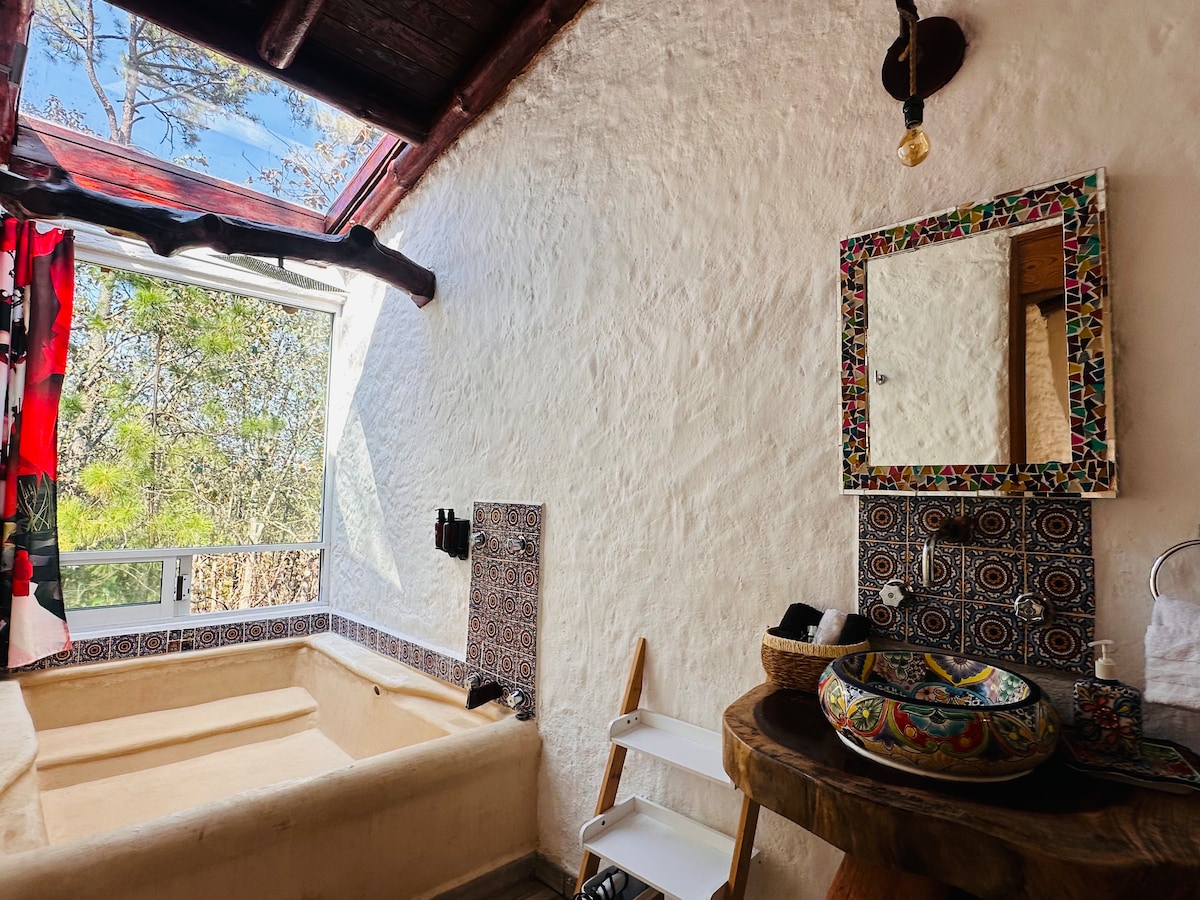 Cabaña Catrina se encuentra en un hermoso lugar en el bosque donde podrás disfrutar de la tranquilidad y un hermoso concierto de aves y árboles. Puedes realizar caminatas en los alrededores y tomar un baño relajante en la tina con vista al bosque. Nos encargamos de dar el mejor servicio proporcionando lo indispensable para una estancia cómoda y relajante.