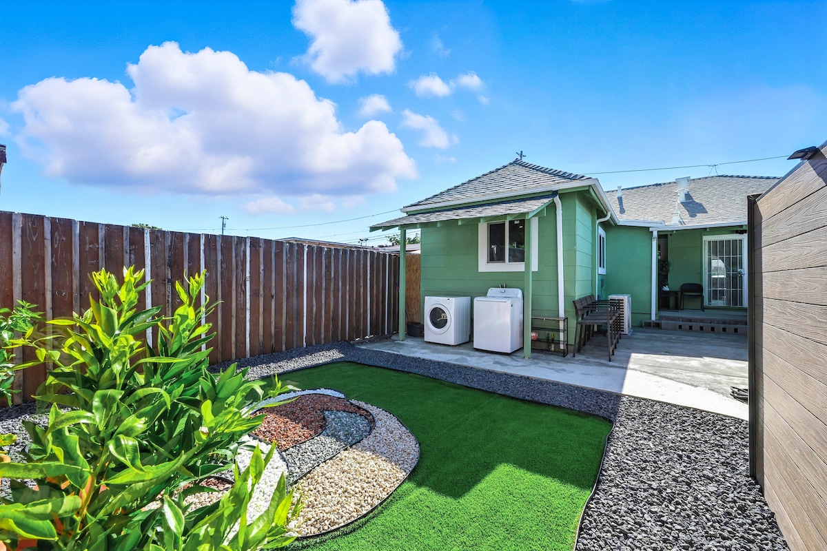 Bienvenido a nuestra unidad 2BR y 1BA recientemente renovada en San Leandro. Disfruta de una acogedora cama tamaño king en una habitación y una cómoda cama tamaño queen en la otra. A minutos del aeropuerto de Oakland, con una estación de BART cercana, supermercados y una plaza comercial. Relájate en la luminosa sala de estar y haz uso de la cocina totalmente equipada. Perfecto para una escapada familiar o de amigos. ¡Reserva ahora para disfrutar de una estancia inolvidable!