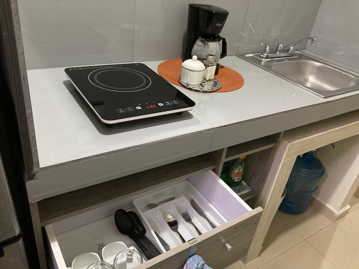 Suite amplia con facil acceso por avenidas principales, ideal para viajes de negocios o de placer, equipada con microondas, frigobar y parrilla electrica; Cuenta con estacionamiento propio.