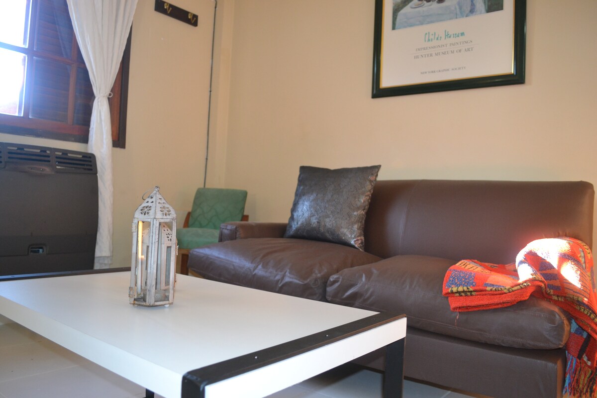 Disfrutá de la comodidad de este alojamiento a pocas cuadras del microcentro, ideal para viajes de trabajo, escapadas en pareja o pasar unos días a conocer la ciudad. El espacio cuenta con: • 🛏️ Habitación con cama matrimonial • 🛋️ Sofá cama en el living para huéspedes adicionales • ❄️ 2 aires acondicionados frío/calor • 🍳 Cocina equipada • 🚿 Baño y lavamanos separados • 📺 WiFi y TV • 🚗 Cochera privada y techada para autos, no camionetas grandeos