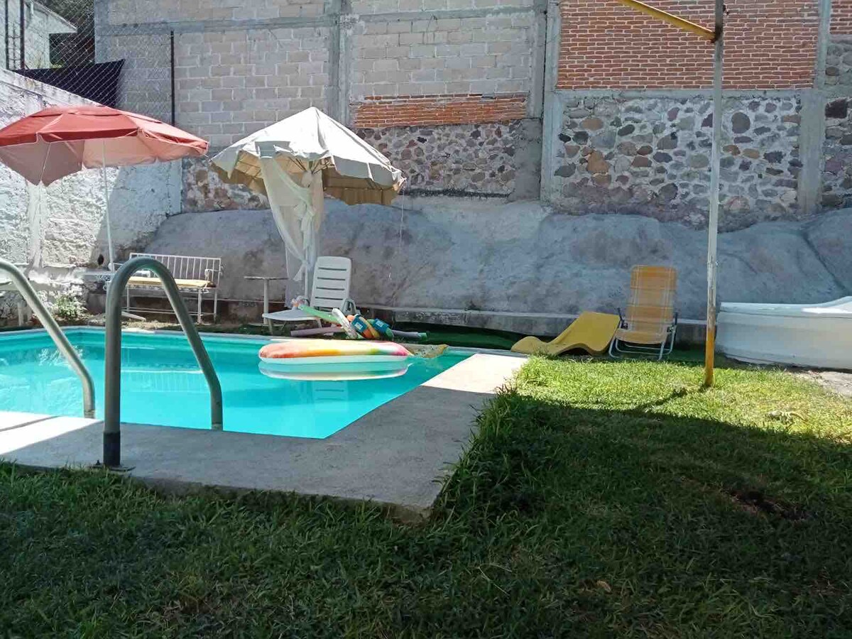 Toda la casa y su alberca privada son solo para ti y tus invitados, las 3 recamaras cuentan con baño completo y medio baño para el área de la alberca, las mascotas son bienvenidas, Aurrera a 5 minutos en auto y muy cerca tienditas y pizzerías y muchas cosas mas incluso caminando, la casa cuenta con Todo y muy cerca Él Rollo, el tecnológico, el estadio de futbol Coruco Diaz, Tequesquitengo, Jardines de México y la pista de Parachute entre muchas cosas más y a solo 15 min en auto de Villa Serena.
