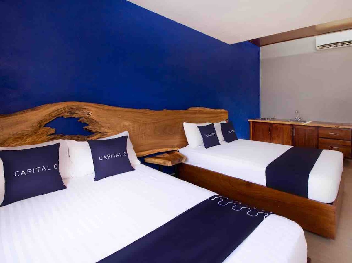 Hotel nuevo ubicado a solo una manzana de la playa y a pocos metros de la calle principal. Ofrece amplias habitaciones de estilo estudio decoradas en un hermoso estilo de madera con una cómoda cama tamaño king, cocina pequeña y baño privado. Las grandes ventanas dejan entrar mucha luz. Todas las habitaciones están equipadas con aire acondicionado y algunas tienen sofá cama para un máximo de 2 personas adicionales.