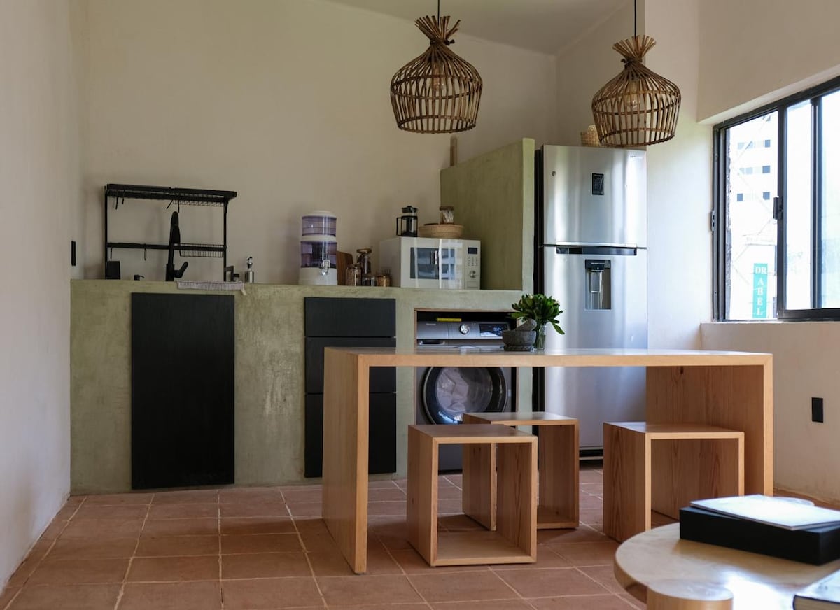 Este es un apartamento de 57 metros cuadrados con techos de ladrillo muy altos, una gran sala de estar y comedor con mucha luz. Encuentra auténticos muebles chic de mediados de siglo y varias obras de arte. El apartamento tiene un dormitorio privado con cama tamaño queen, armario y baño y una cocina independiente con suministros. También cuenta con dos pequeños patios interiores para la luz y la ventilación. En la restauración se conservaron muchos detalles arquitectónicos originales de 1940, como suelos, paredes de ladrillo, techos y marcos de ventanas. El proyecto apareció recientemente en Architectural Digest México y ganó varios premios importantes de arquitectura: Architecture Masterprize y NoldiSchreck. Los huéspedes pueden hacer uso de todo el apartamento. También puedes pasar el rato en el patio interior del apartamento y en el vestíbulo del primer piso. También hay un cuarto de lavado con lavadora y secadora que puedes usar junto al garaje. Santa María La Ribera es un barrio histórico del siglo XIX. Pasea por el Parque de la Alameda de enfrente y visita el cercano Museo de Geología. Aquí, contempla fósiles de mamuts y dinosaurios, además de pinturas del famoso maestro mexicano José María Velasco. Encontrarás muchas opciones de transporte público, como metro, metrobús (línea directa al aeropuerto y al centro histórico), tren, autobús y sistema de bicicletas públicas (ecobici). La línea 4 norte del metrobús es una conexión directa desde las terminales T1 y T2 del aeropuerto hasta Buenavista y viceversa. Tarda unos 45 minutos. 30 pesos por persona, se necesita una tarjeta de metro recargable. Forma segura, rápida y directa desde y hacia el aeropuerto.