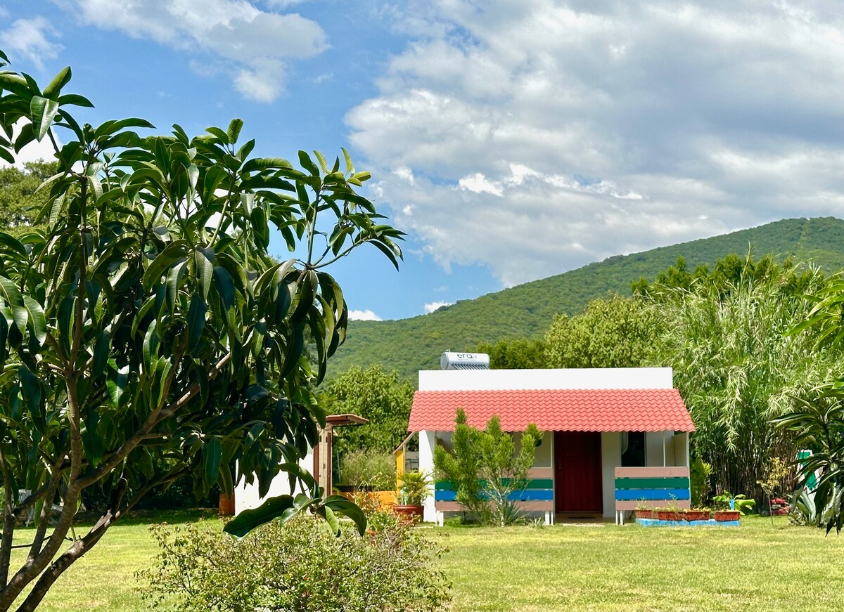 Bungalow para una o dos personas. Una recámara, baño y cocina equipada. Ubicado en Tlalixtac de Cabrera, a diez kilómetros de la ciudad de Oaxaca, al pie de las montañas donde inicia la Sierra Norte. Colinda con una zona protegida por la existencia de especies animales: venados, liebres, coyotes y otros. Su ubicación permite la práctica de senderismo y ciclismo de montaña. Ideal para el descanso, la reflexión, la creatividad y para el reencuentro consigo mismo y con el universo.