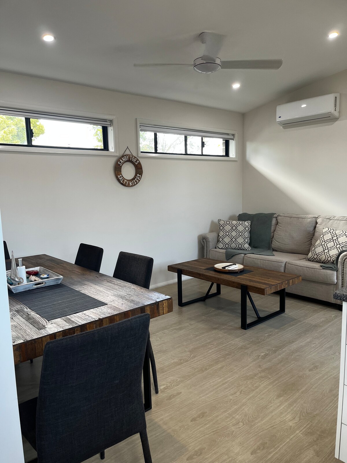 Apartamento de un dormitorio con aire acondicionado totalmente independiente, con una cama tamaño queen, cocina/sala de estar completa y baño con ducha e inodoro. A solo 150 metros de la playa de Orión y a 800 metros de tiendas y restaurantes. Camino peatonal y ciclable compartido, que conecta Vincentia y Huskisson, alrededor de la costa de la bahía de Jervis, justo en la puerta de tu casa. Preciosos senderos para caminar, a través de parques nacionales, que conectan muchas playas cercanas, incluidas las arenas blancas de Hyams Beach.