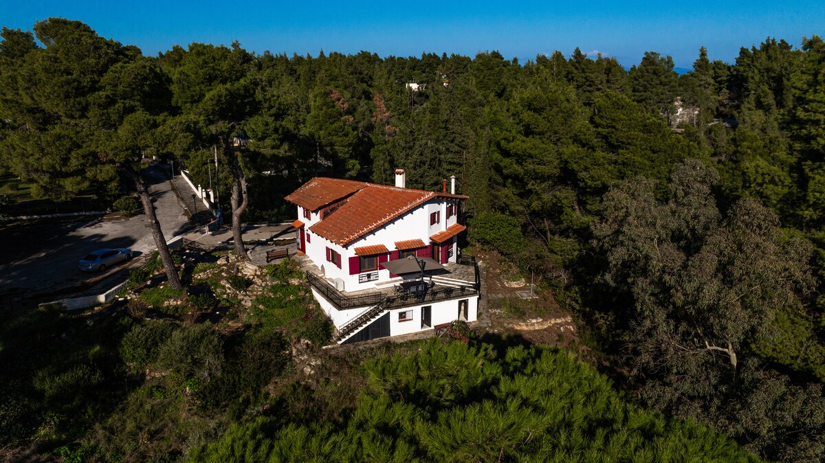 Villa into Sani's pine woods forest. 20' on foot from Koutsoupia beach, Sani beach, Sani Resort and Marina. Garden and balcony in addition to the unique scenery to spend quality time with your loved ones. Private parking spots: 2 The unique position of our villa ensures that you get both the relaxation you seek but also you can have all the amenities that Sani Beach Provide.