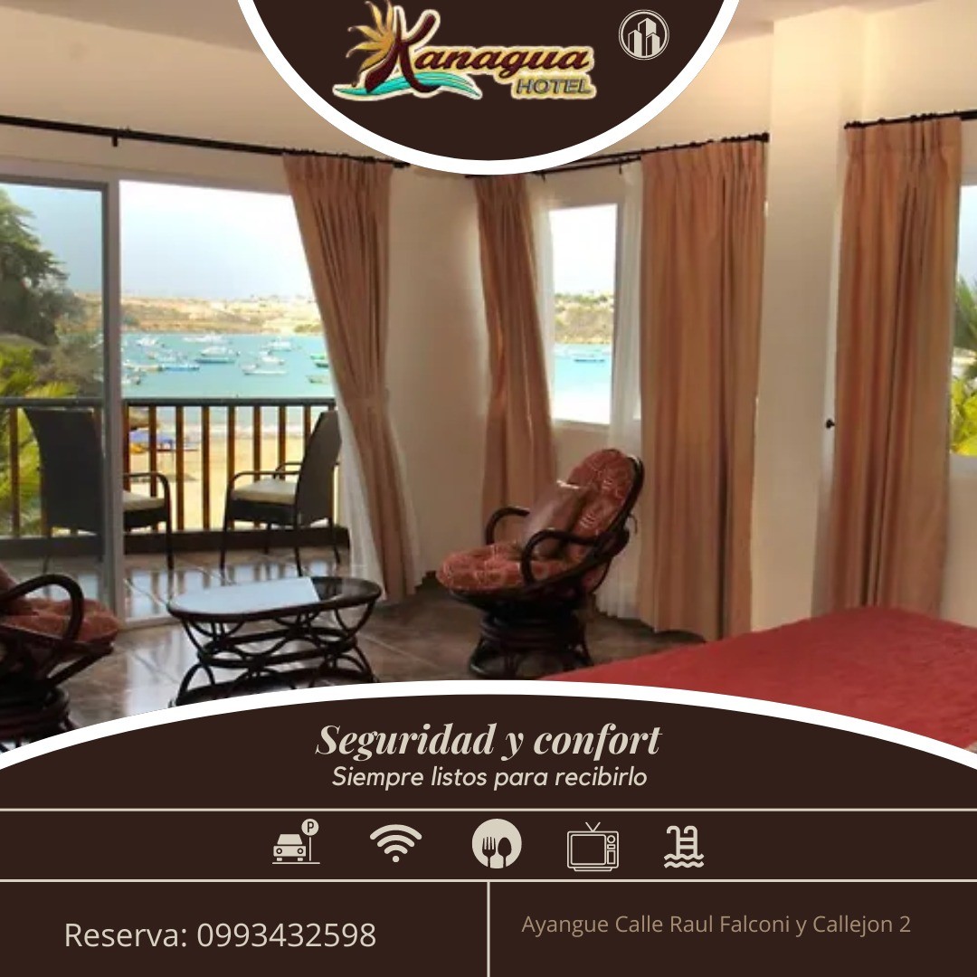 *INCLUYE:* ✅ Matrimoniales y familiares ✅ Wifi 📶, A/C 🧊, TV 📺, baño privado 🚿 ✅ Piscina bar temperada 🏊♀️ (8h-00h) 🍹 ✅ Desayuno americano incluido🍳 (8h-10:30h) SOLO fines de semana y feriado ✅ Pet friendly 🐶 (+$10) ✅ Parqueo techado 🚘 ✅ A solo 2 min de la playa caminando 🕒 Check-in 13.00h / Check-out 12.00h