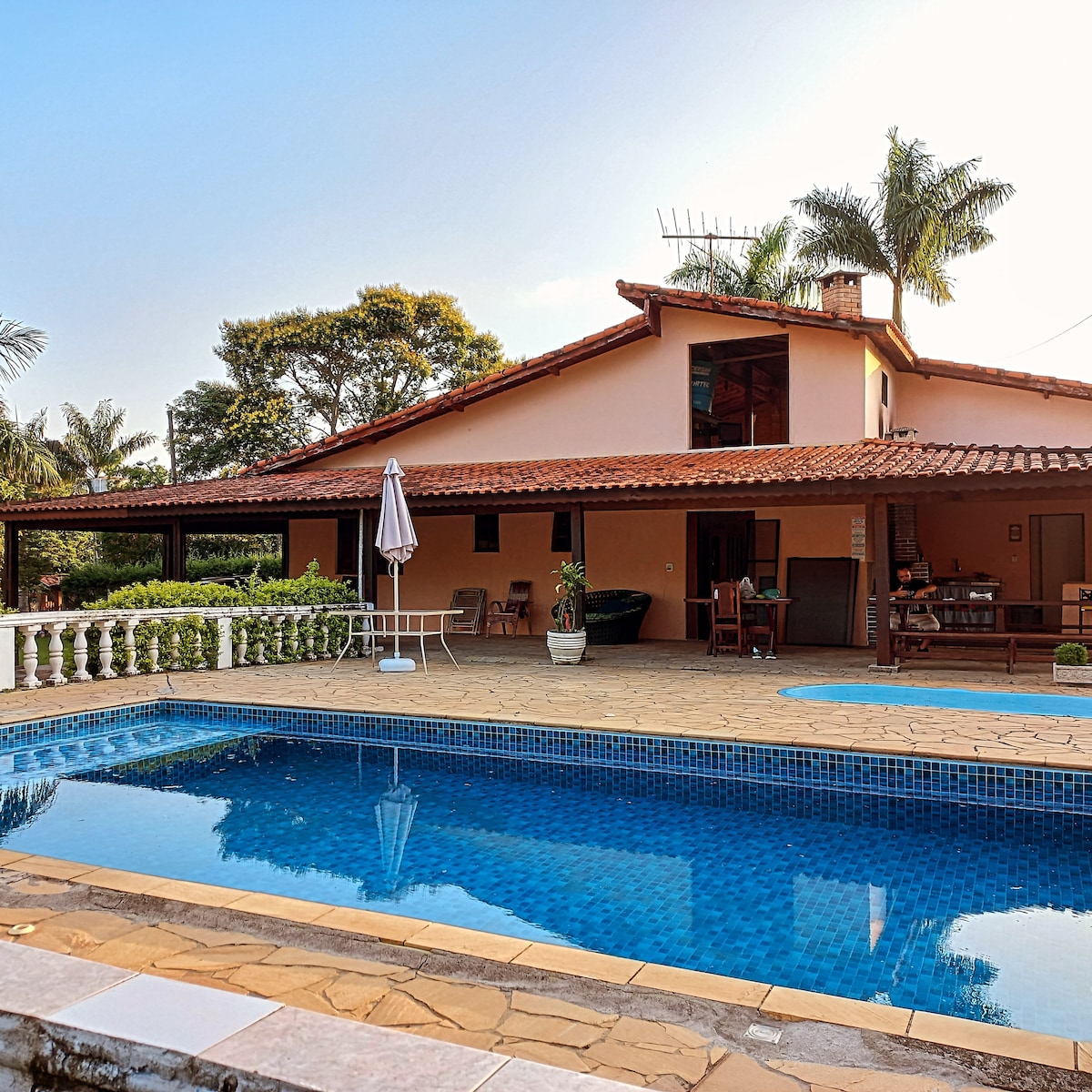 Perfecto para relajarse con familiares, amigos 🏡 Capacidad para un máximo de 15 huéspedes 🛁 3 baños y 1 baño 🚗 6 lugares de estacionamiento 🏊♀️ Amplia piscina (5x13 m y 1,60 m de profundidad) 🧖♀️Sauna seco 📶 Wifi y Netflix Cocina equipada, con 2 filtros de agua. 🥩Parrilla Ropa de cama (calidad premium) Ventiladores en las habitaciones y en la sala. 🐟Lago de la pesca deportiva Jardín con árboles frutales (pitanga, acerola, etc.) Ambiente ideal para descansar y conectar con la naturaleza.