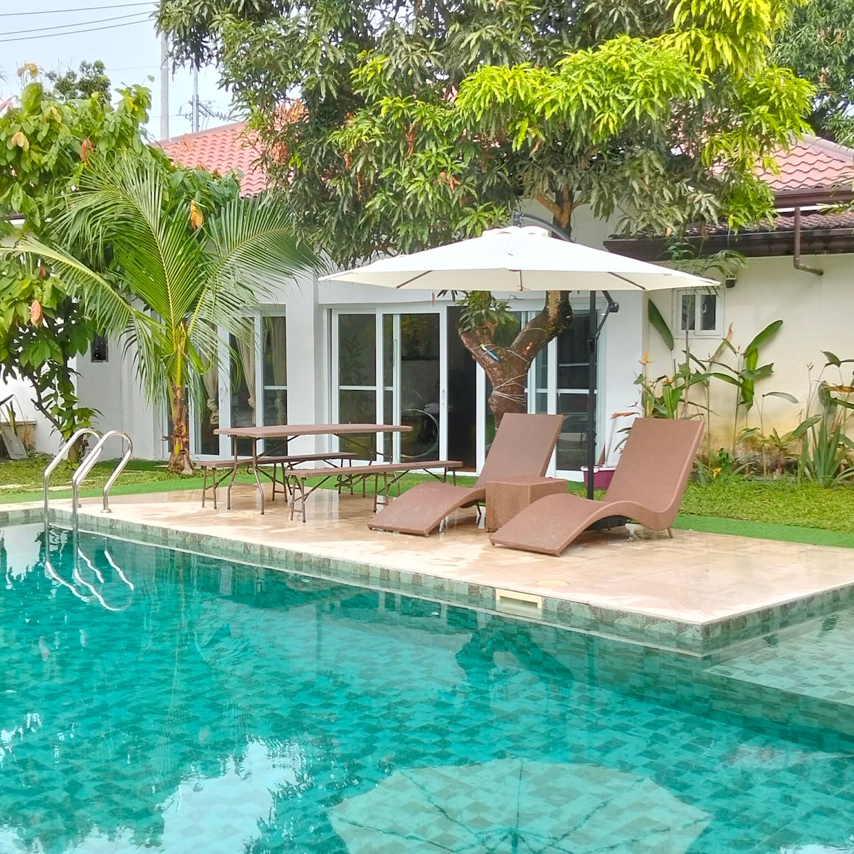 Salida antes de las 11:00 Ideal para 20 adultos. ¡Disfruta del encanto moderno de esta villa de nueva construcción! ¡Ubicada a solo 40 minutos de Metro Manila, esta lujosa propiedad de 1 hectárea es perfecta para familias grandes y grupos que quieran alejarse del tráfico y la contaminación de la ciudad sin el largo tiempo de viaje! Date un chapuzón en nuestra piscina, completa con jacuzzi y piscina infantil, y disfruta de otras actividades como karaoke, dardos, pista de bicicletas y mucho más, ¡todo mientras disfrutas de la fresca brisa del campo!