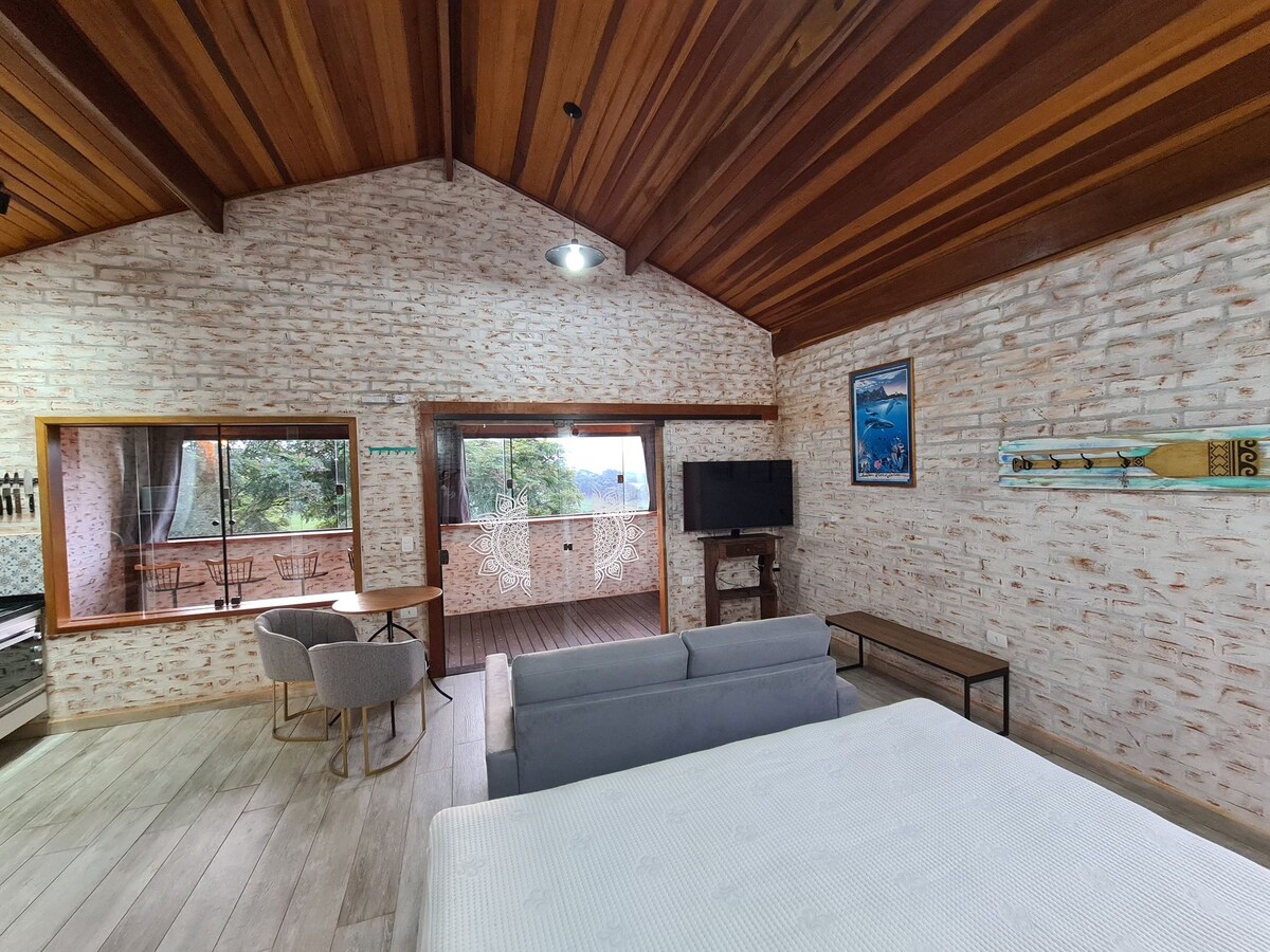 El Nosso Cantinho Chalet fue creado con gran cariño, con cada detalle diseñado para ofrecer comodidad, calidez y días verdaderamente inolvidables. En un estilo rústico, nuevo y espacioso, el chalet tiene una chimenea y un gran punto destacado: una bañera de hidromasaje doble redonda con cromoterapia, perfecta para relajarse mientras disfrutas de la encantadora vista de los árboles de araucaria. Un refugio ideal para reducir la velocidad, brindar por el amor y crear recuerdos especiales.