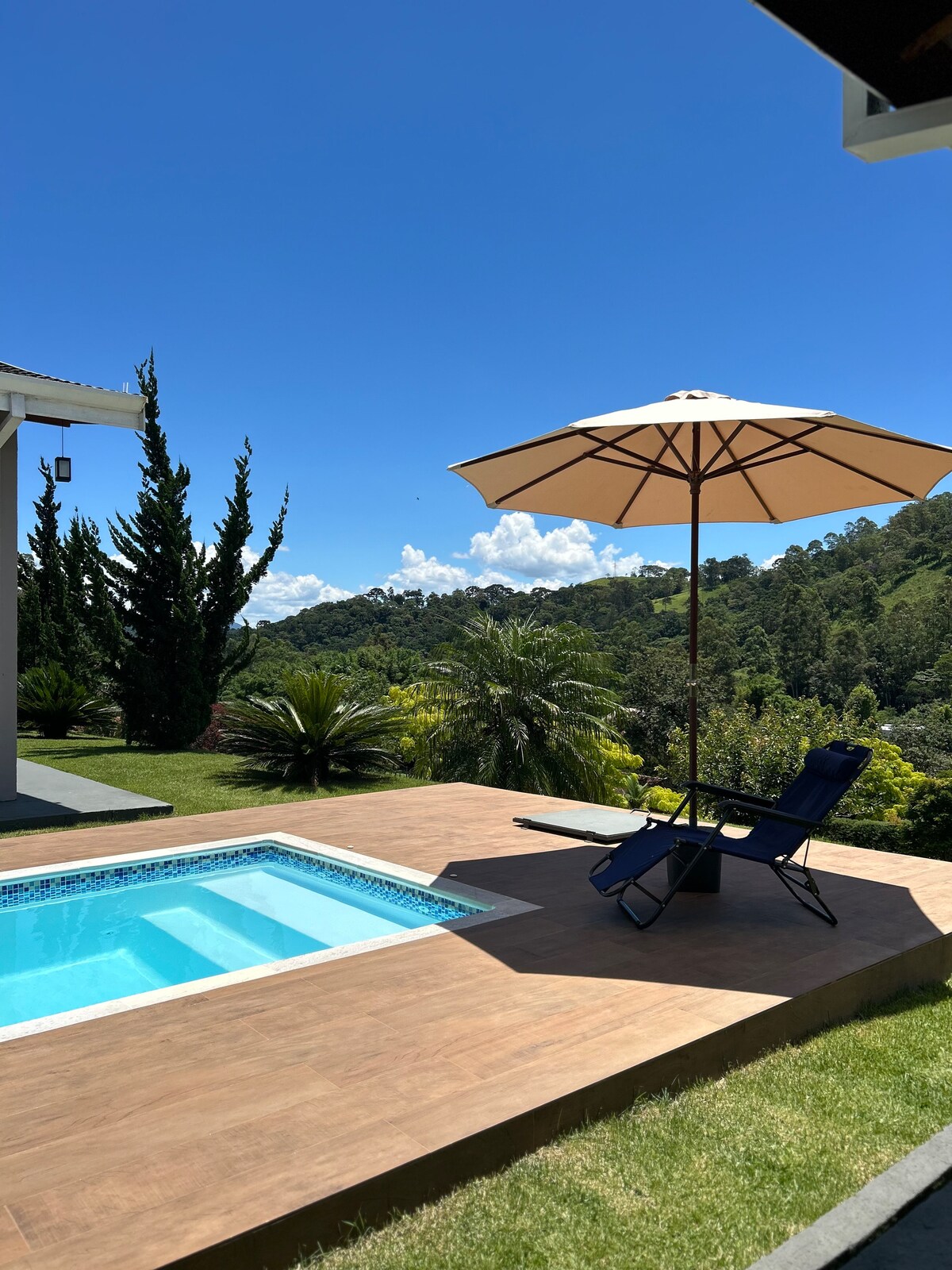 La comodidad y la tranquilidad del chalet de Damasco se encuentran en un espacio único y confortable. Serás recibido por un ambiente acogedor que ofrece una sensación de privacidad y soledad. El refinamiento del chalet de Damasco trae una experiencia de hospedaje única, que combina la comodidad de una casa de campo con la belleza natural de la región. La piscina está climatizada y alcanza hasta 29 grados y se puede usar en cualquier temporada del año. No tenemos chimenea.