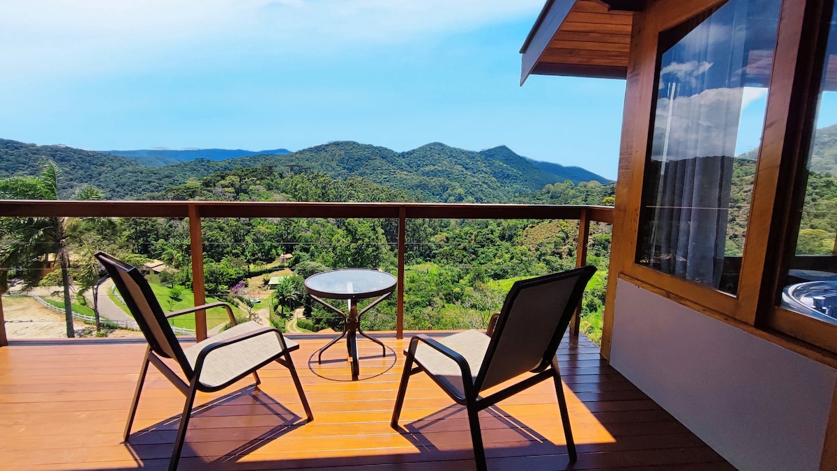 Olvídese de sus preocupaciones en este lugar espacioso y tranquilo. Chalet nuevo, encantador y acogedor. Bien ubicado, a 2 km del centro, en la cima de la colina, con una vista de 360 grados, del Pico Agudo, de la Pedra do Baú y una hermosa puesta de sol. Lugar muy tranquilo, silencioso y privado, con mucha naturaleza alrededor. Amplio espacio alrededor de la cabaña para disfrutar. Ideal para pasar momentos inolvidables en pareja.