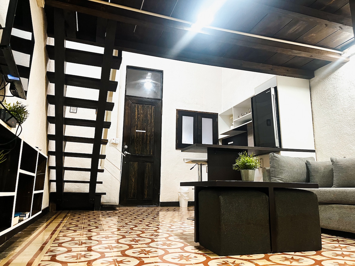 Te sentirás en un ambiente comodo, seguro y cálido, rodeado de elegancia y sobre todo preocupados por desinfectar y sanitizar cada área y elemento. Tu salud es primordial para nosotros. El Loft se acopla a cualquier motivo de su viaje, ya sea para vacaciones o trabajo. El loft se encuentra dentro de una casa histórica. La Sala es un espacio compartido con los huéspedes y mi familia asi como el comedor también. tenemos planta eléctrica en caso de que se vaya la luz y funciona con el ac.