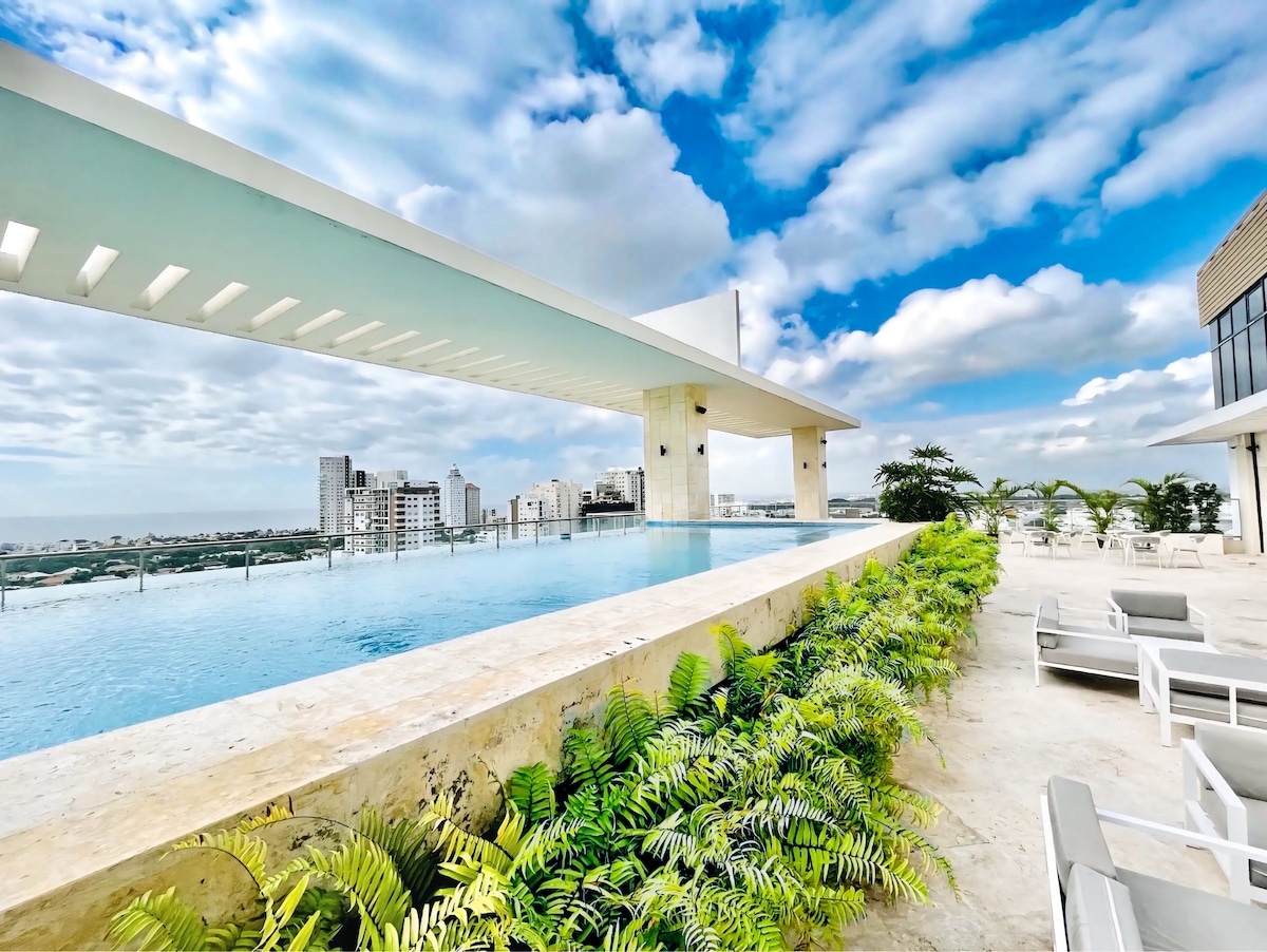 Este hermoso y confortable aparta estudio se encuentra ubicado frente a las costas del mar caribe y a 2 minutos del malecón, cuenta con todos los utensilios y electrodomésticos necesarios para tener una estadía super agradable. wifi, smarttv, cocina modular, baño amplio con agua fría y caliente, lavadora, aire acondicionado, cama Queen, balcón con vista al mar y a la ciudad, parqueo gratuito, amplia piscina; acceso rápido a tiendas, restaurantes, malls, centros de diversión, etc. ¡Los esperamos!