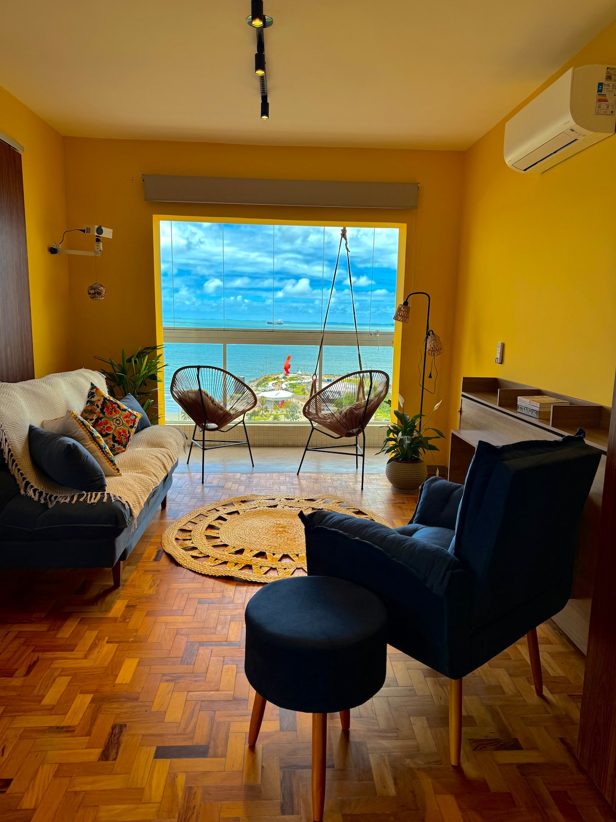 Sala de estar, muy acogedora, a cinco minutos de la playa y del Acuario Municipal, en uno de los barrios nobles de Santos, Ponta da Praia🏖️, calle muy transitada, con panadería, carnicería, farmacia, restaurantes, cafeterías, cerrajería, gimnasio, supermercado Extra, Dia y Pão de Açúcar, tienda de 1,99, tienda de ropa, Cacau Show, tienda de cosméticos, Quitanda, pastelería, a diez minutos del centro comercial Praiamar, a quince minutos del ferry a Guarujá ubicado en Av Dr Epitácio Pessoa 582 ap 914