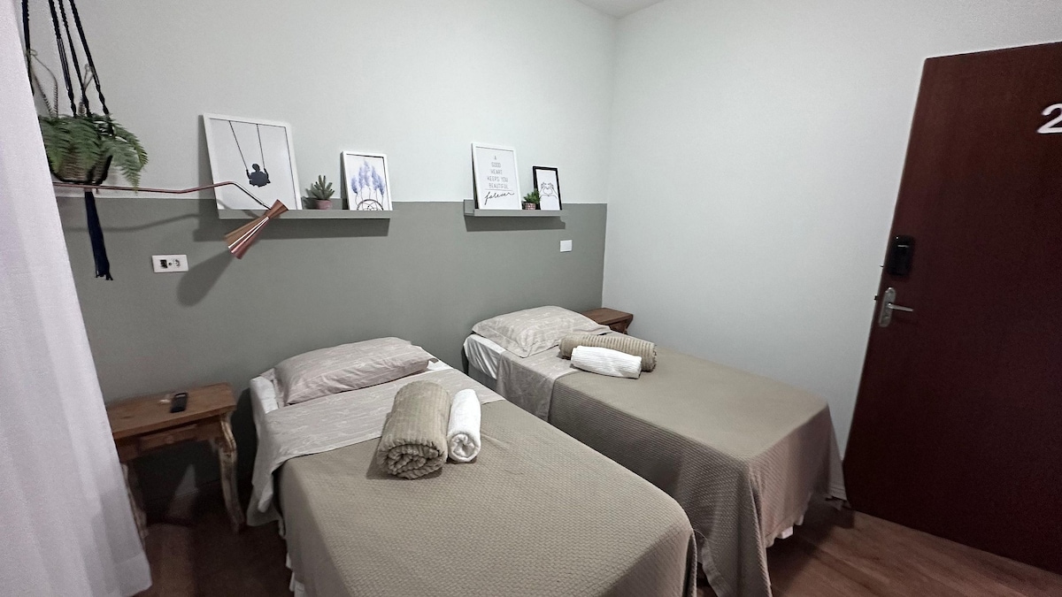 Sítio a 5 km do centro da cidade, fácil acesso (apenas 1 km de estrada não asfaltada), casa possui três quartos e uma sala onde é possível colocar colchões no chão para acomodar até 8 pessoas na casa. Varanda em três lados, com ganchos para rede, churrasqueira e mesas para refeição. Utensílios de cozinha disponíveis, panelas, etc. Armários de alvenaria disponível nos três quartos. Playground com três balanços e duas gangorras, e um campo de futebol.
