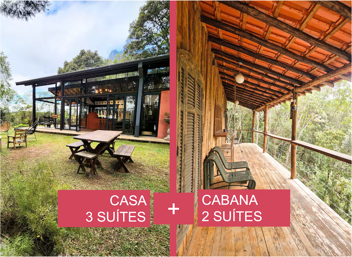 Para quem busca contato com a natureza e tranquilidade a 1h de São Paulo A Casa Sede tem uma suíte, cozinha super equipada, lareira, futons enormes na TV, fogão à lenha, forno de pizza, piscina, sauna, parrilla A 50m da Sede, estão as queridinhas suítes Yosemite e Patagônia com camas king ultra confortáveis, ar condicionado A 150m da Sede, está a Cabana Francis Mallmann com duas suítes, sala/cozinha, varandona na copa das árvores, banheiras outdoor aquecidas, forno de pizza e churrasqueira